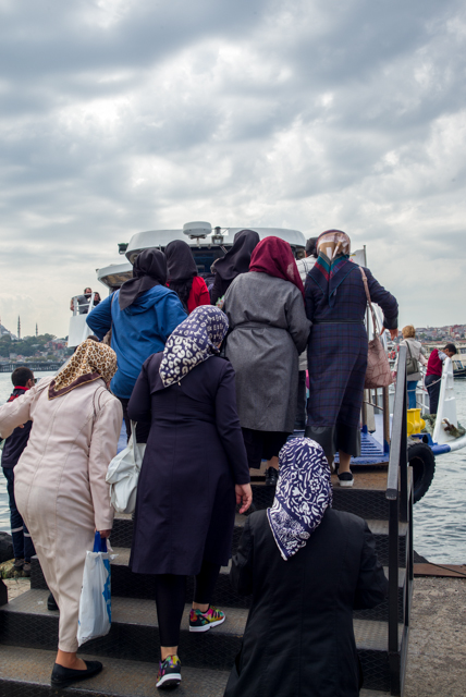 Once on the other side, we waited an hour for the ferry. When it finally die, we followed a crowd of traditionally-clothed Turkish ladies onto the ferry, then it set off up the Golden Horn.