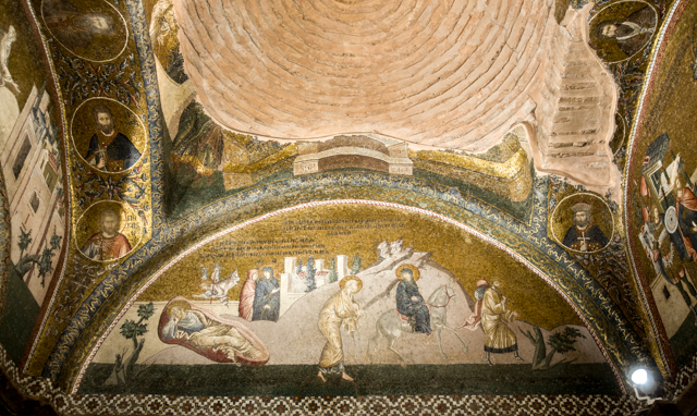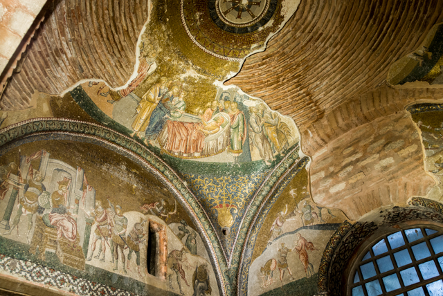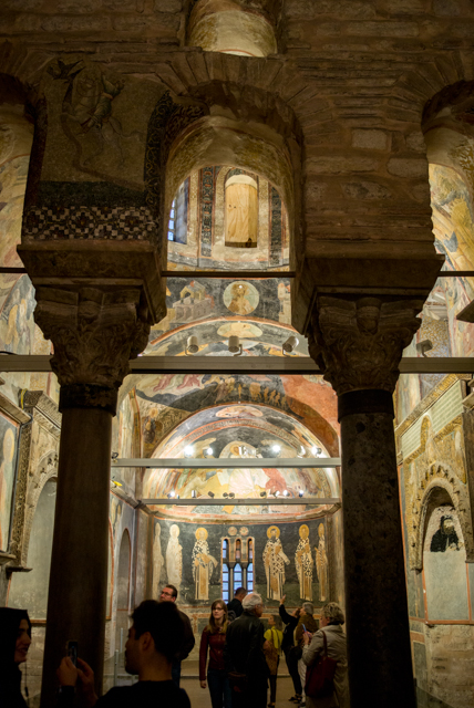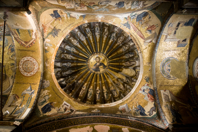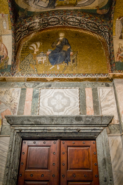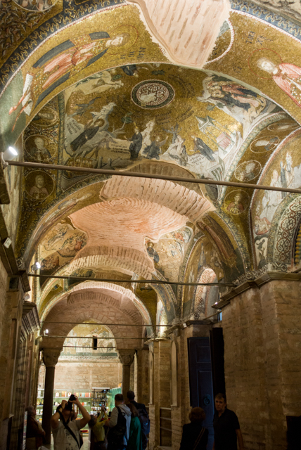 We made one wrong turn near the end of the walk to the church which took a while to perceive and to correct, but we eventually succeeded to find the church. We were richly rewarded for our effort. The mosaics are more numerous and better than any others that we have seen in Istanbul. They virtually cover all the surfaces above the doors and in the domes through much of the building.