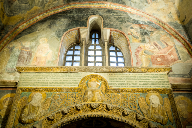 The walls and ceilings of one section of the church are covered with frescoes which are also interesting.