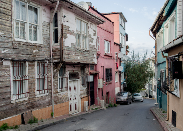 Following the guidebook's directions, we disembarked at the Avansaray stop and ate lunch at a large, empty restaurant in the park near the stop. Then we began a long, uphill walk through narrow, mostly unmarked residential streets toward the church.