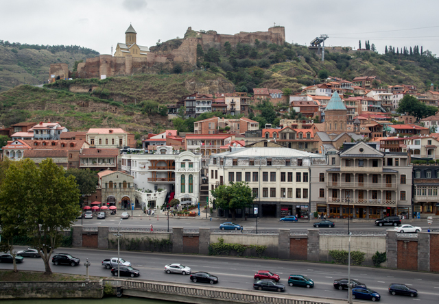 We went out next morning to explore Tbilisi. A long, narrow, tree-covered street led us from Freedom Square to Meidan Square, an unimpressive square at the center of the Old Town. After crossing the Mtkvari River, we climbed up onto a rocky bluff overlooking the river where the 13th Century Metekhi Church occupies the site of an early Georgian Christian church of the 5th Century CE.