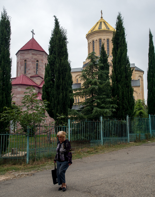 The small town of Mtskheta, 33km north of Tbilisi, sits at the confluence of the smaller Aragvi River with the Mtkvari River. Mtskheta was the capital of eastern Georgia for 1200 years until the capital was moved to Tiblisi in the 5th century. It was the capital in 327 when St. Nino convinced the Georgian king to become the second kingdom to convert to Christianity. (Armenia converted some 25 years earlier.) The town has since remained a mystical site of Georgian culture ever since, and the large old church remains the site for several annual ceremonies. These facts prompted us to make a day trip there to see it.