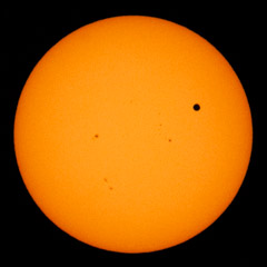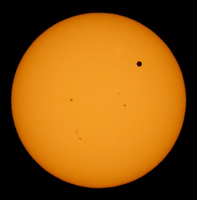 Venus transited across the face of the sun as seen from the United States on 5 June 2012. The transit is a very rare astronomical event which was first observed in 1639. Observing the transit of 1769 was a main purpose of Captain Cook's first voyage to the South Pacific. For the 2012 transit, I traveled to Eastern Utah to photograph it. The first two photos were made from 109° 50.578' W and 38° 38.345' N, alongside Spring Canyon Road which is about 15 miles north of the Island in the Sky in Canyonlands National Park. The third photo was made several miles further east and north alongside US 191. The sky was perfectly clear, although it was quite windy, and there was a considerable amount of dust in the air, but not enough to prevent making the photographs.